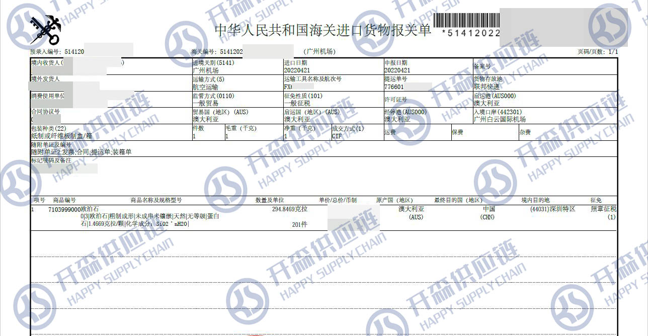 一、澳大利亞歐泊石進(jìn)口報關(guān)代理案例詳情