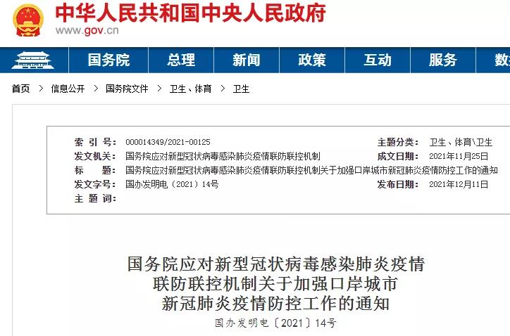 12月11日,國務院應對新型冠狀病毒感染肺炎疫情聯防聯控機制印發《關于加強口岸城市新冠肺炎疫情防控工作的通知》,其中《通知》要求做好冷鏈食品傳播風險防控工作,各?。ㄗ灾螀^、直轄市)要抓緊組織本轄區口岸城市開展一次冷鏈相關企業風險排查,全面評估和整改各環節風險漏洞,并于2021年12月15日前將排查整改情況報送國務院聯防聯控機制綜合組。并要求離開陸地邊境口岸城市需持48小時核酸證明。
