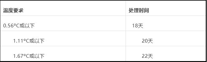 所有輸華櫻桃必須采取冷處理,冷處理指標(biāo)要求如下: