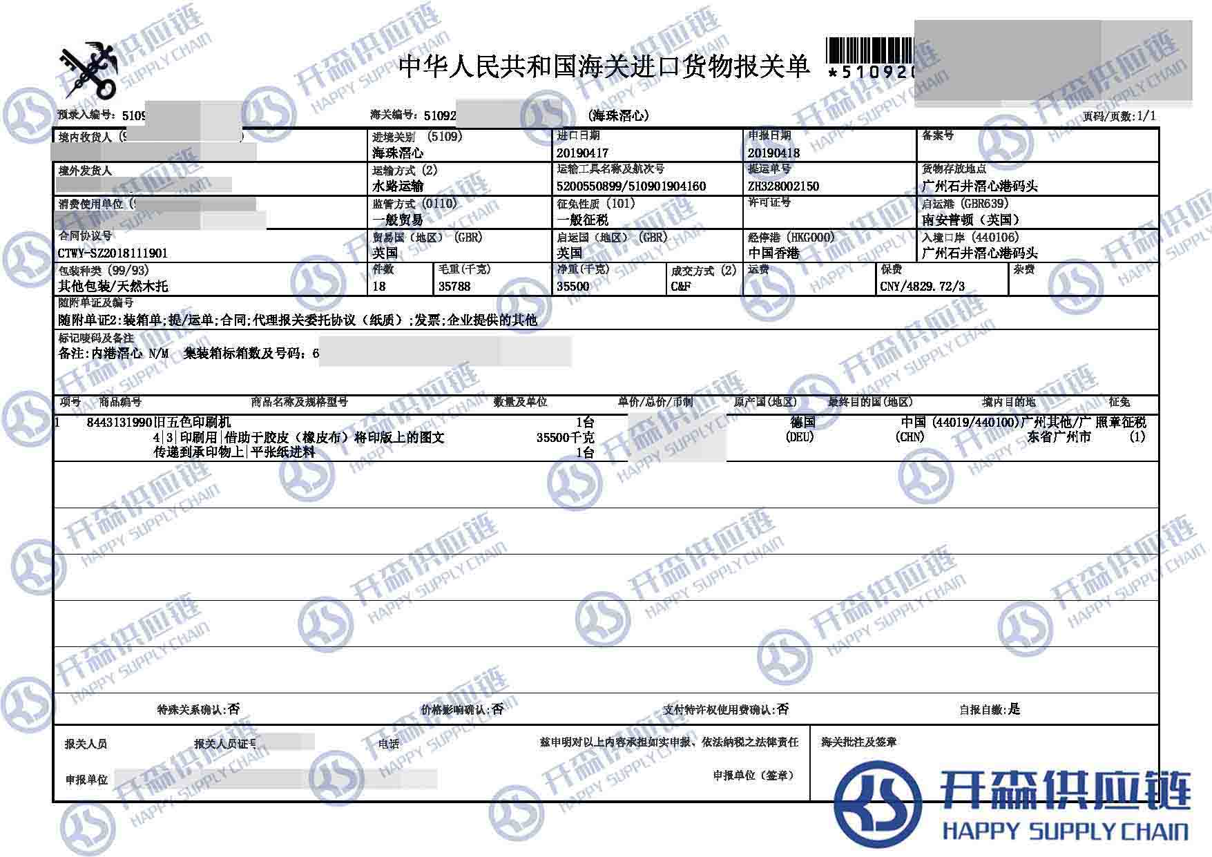 廣州港舊五色印刷機(jī)進(jìn)口報(bào)關(guān)清關(guān)代理【進(jìn)口案例】