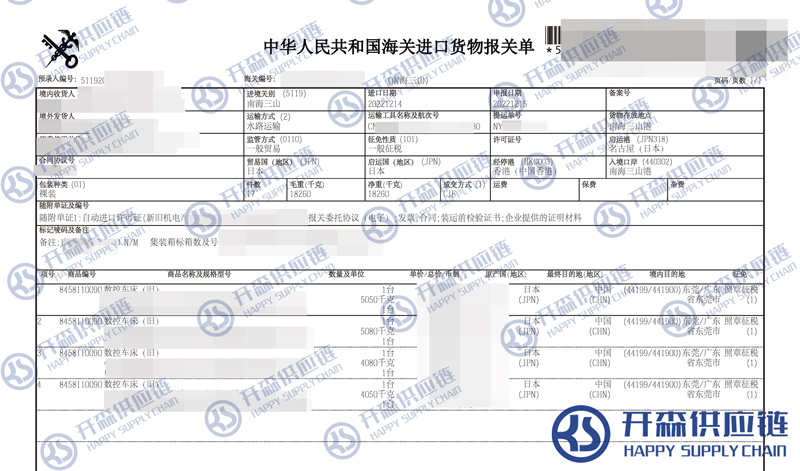 【本文結語】 上述就是佛山港二手舊數(shù)控車床進口報關代理服務【經(jīng)典案例】的全部內(nèi)容,希望能對您有所幫助,如有舊數(shù)控機床進口報關上任何疑問及問題可隨時在線聯(lián)系我們或撥打 18002611553,開森供應鏈擁有豐富的舊數(shù)控機床進口報關操作經(jīng)驗及案例,10余年進口經(jīng)驗為您所用,各類進口疑難都能為您一一解答及協(xié)助快速處理解決!